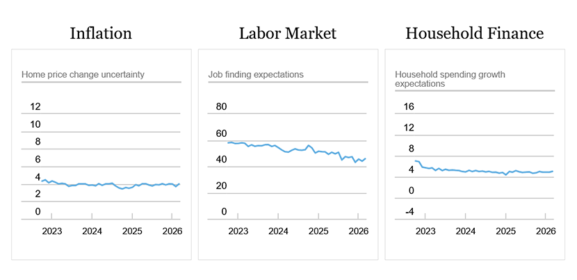 The main findings from the March 2026 Survey of Consumer Expectations are: