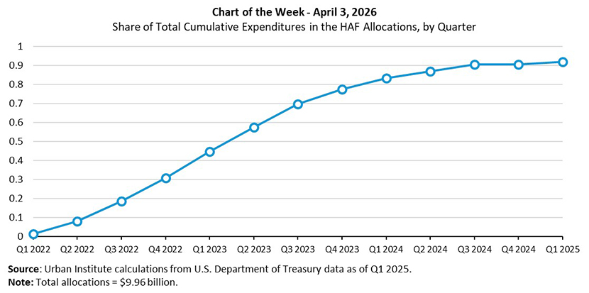 This week’s MBA Chart of the Week replicates Figure 3.0.1 from the report and shows that HAF expenditures increased consistently quarter over quarter from Q1 2022 through Q3 2023. The program was heavily subscribed: states and tribes had spent 77.5 percent of their allocations by the end of 2023 and more than 92 percent as of Q1 2025.