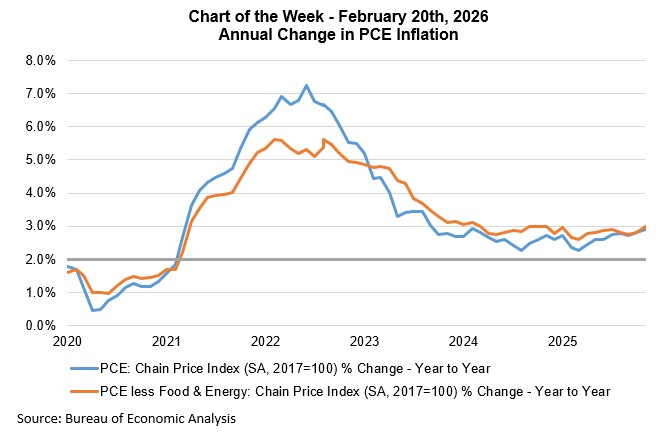 While markets were eager for Friday’s report on Q4 2025 GDP, perhaps the most significant result was that PCE inflation increased 2.8% compared to a year ago, a reacceleration from the third quarter, with the core measure exhibiting a 2.9% increase.