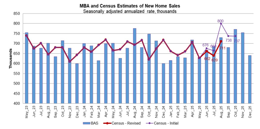 MBA estimates new single-family home sales, which has consistently been a leading indicator of the U.S. Census Bureau’s New Residential Sales report, is that new single-family home sales were running at a seasonally adjusted annual rate of 640,000 units in December 2025. The new home sales estimate is derived using mortgage application information from the BAS, as well as assumptions regarding market coverage and other factors.